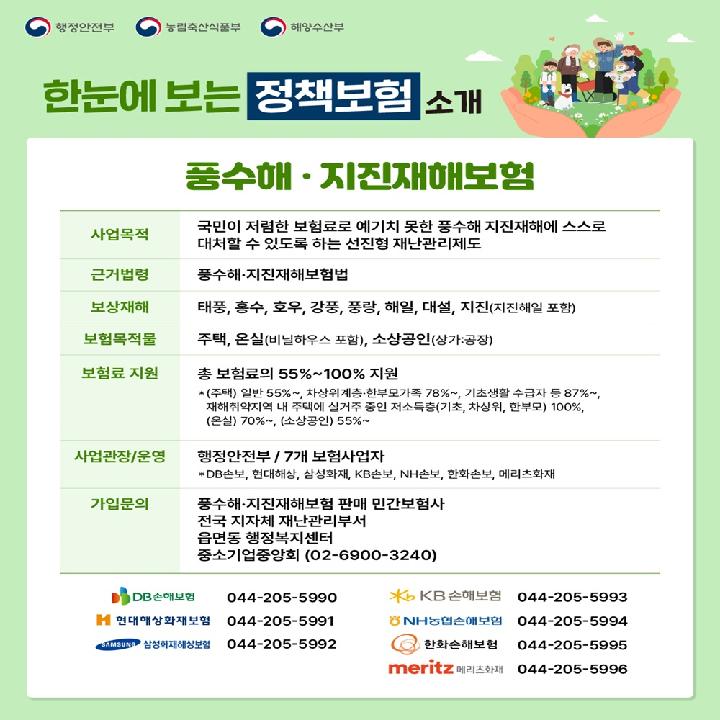 자연재해 관련 정책보험 안내
