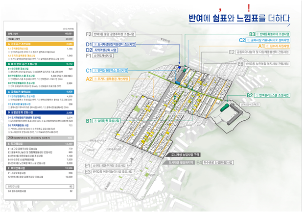 - 사업내용 : 커뮤니티 공유 기반 구축, 정주환경 개선, 공유공간 조성을 통해 반송1동 생활인프라 기반 조성과 지속가능한 발전의 성장 모델 제시